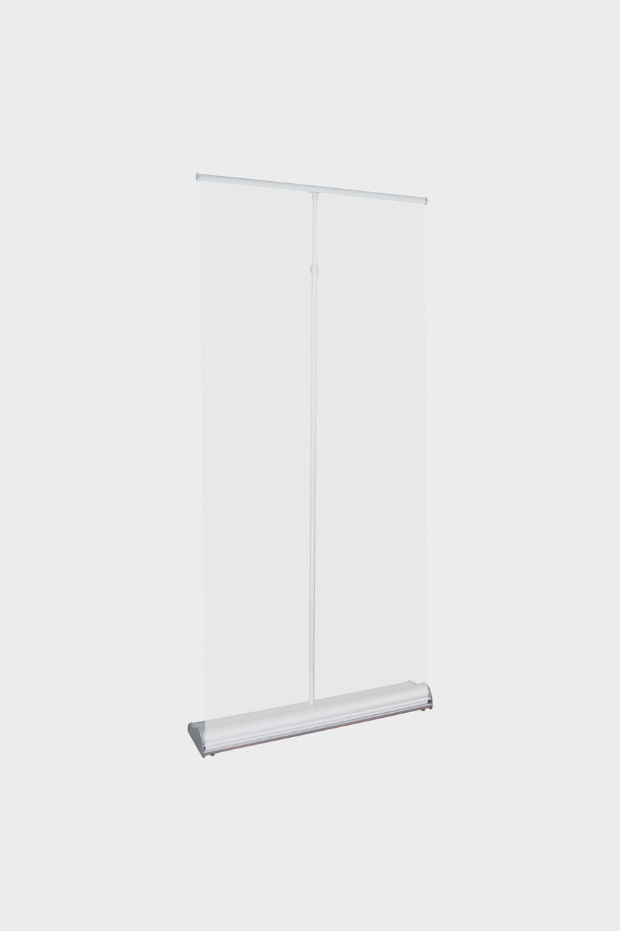 The Orient 800 is a simplistic and elegantly designed retractable banner stand. It is finished in anodized silver or black with heavy duty molded end caps. Variable graphic height between 60.5" and 83.25". Padded carry bag is included.